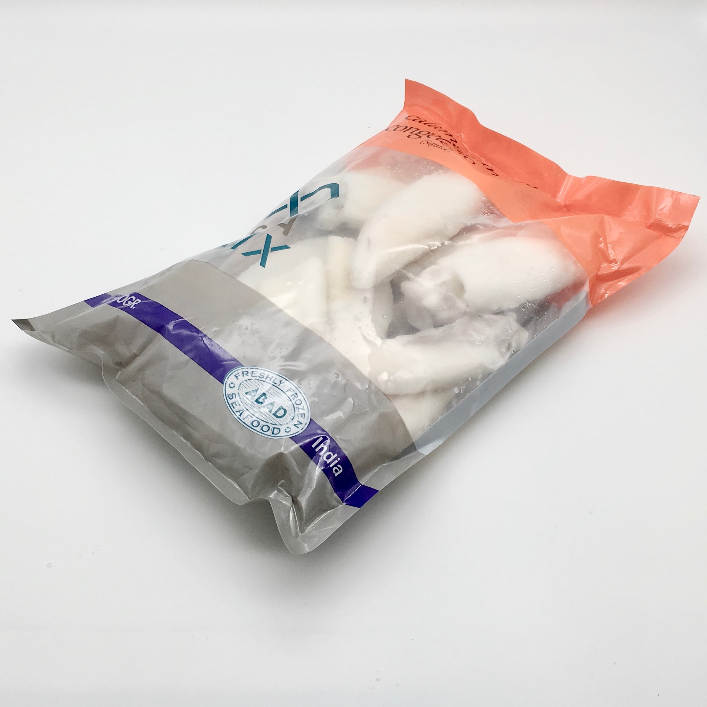 Calamar limpio de la India congelado IQF marca SEAPEIX (Bolsa) SEA SPARKLE (CAJA). Caja de 8 bolsas de 800g peso neto y glaseo del 20%.